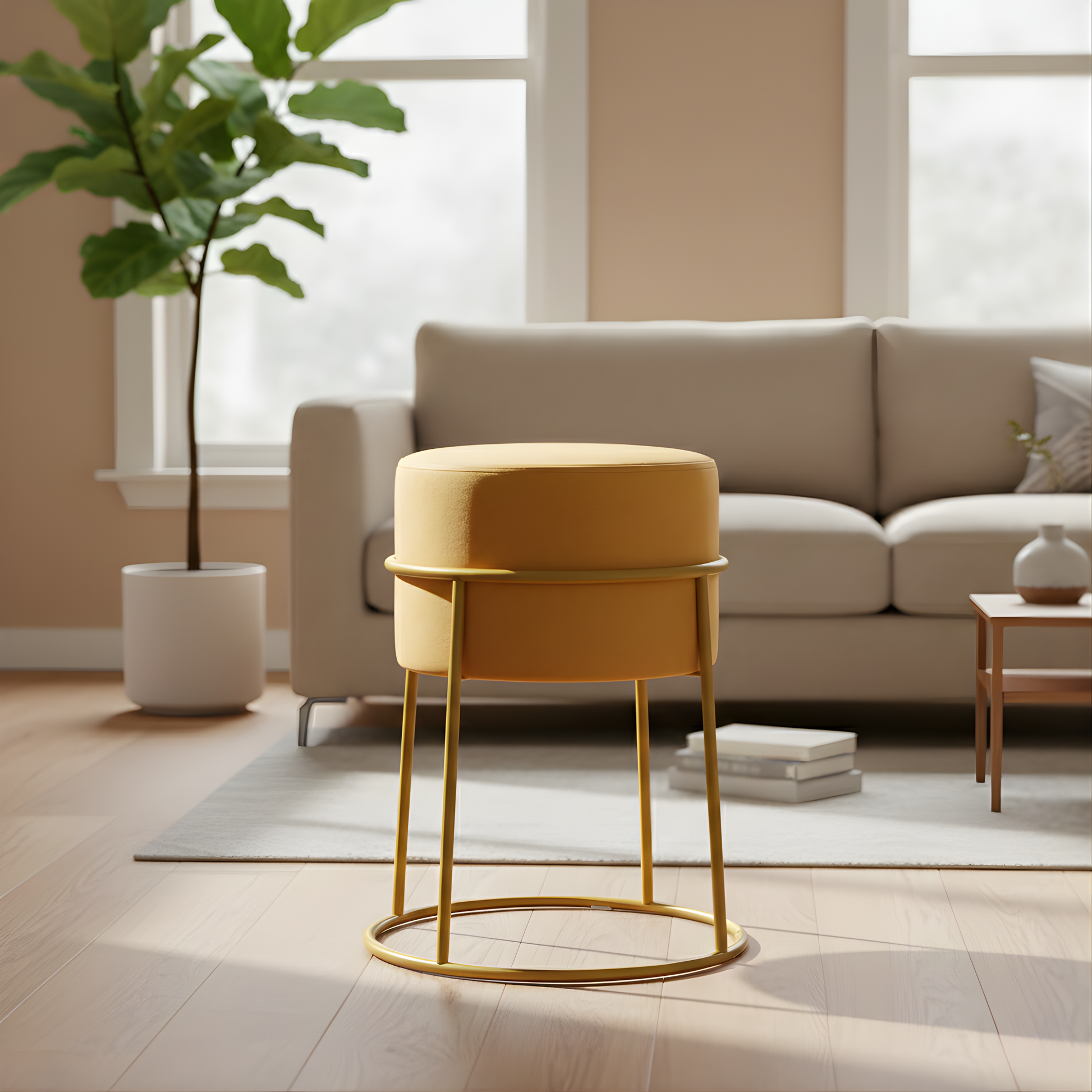 - 1. VERSATILE MODERN DESIGN: The NUTECH IMPEX Round Footstool showcases a contemporary design that effortlessly blends with modern aesthetics. Its versatile functionality allows it to serve as a Shoe Stool, Makeup Vanity, or Ottoman, adapting to your ever-changing needs with style and ease.